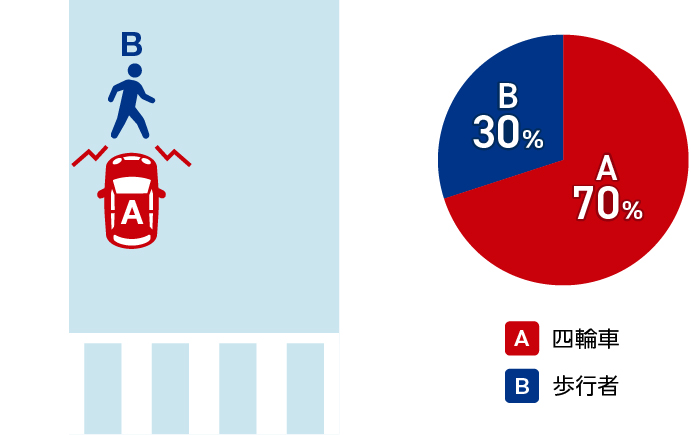 信号機のない横断歩道で、車Aと歩行者Bが衝突した場合