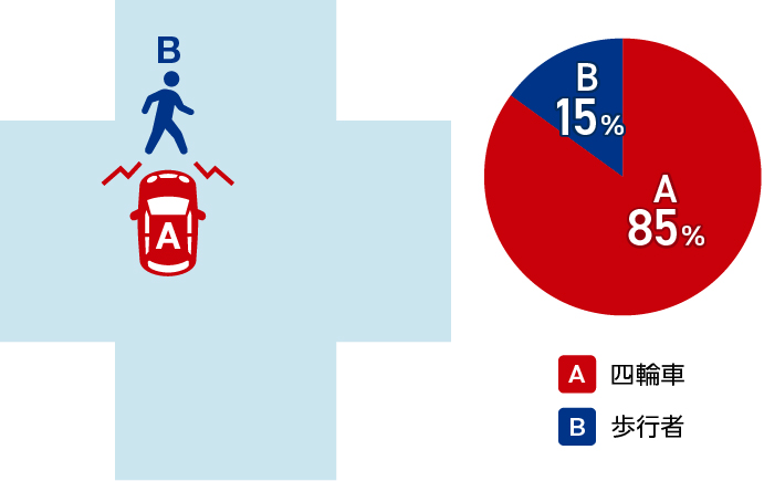 赤信号で進入した車Aと、青点滅信号で横断開始した歩行者Bが衝突した場合