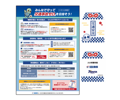 また、近年自転車事故が増加していることを踏まえ、自転車や歩行者の交通安全マナーとルール等を啓発するオリジナルのフライヤー2,700枚をSBI損保の社員が配布しながら、交通安全の大切さを呼びかけました。